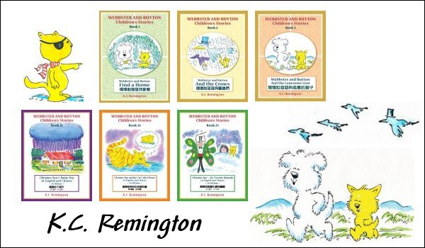 Q: You have published six bilingual children’s ebooks so far — three from the “Webbster and Button Children’s Stories” (Webbster & Button Find a Home, Webbster & Button and the Crows and Webbster & Button and the Lonesome Lion) and three of the “Christine Sun” children’s stories (Christine Sun’s Rainy Day, Christine Sun and the Cat Called Mouse and Christine Sun: My Favorite Butterfly). What do you try to convey in these children’s books?