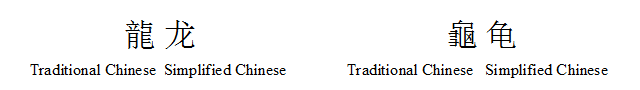It is important to keep in mind that written Chinese involves two systems – Traditional Chinese and Simplified Chinese. An example here, using Chinese characters “dragon” and “tortoise”, demonstrates why Simplified Chinese is easier to learn to read and write: