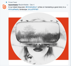 I am pleased to share with you, that Submittable recently published an updated version of my reflection on the “Storytelling for VR” workshop (original post here).