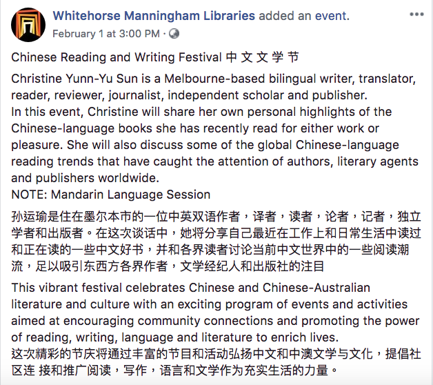 #Chinese #Reading and #Writing Festival – program booklet » Screen Shot 2019-02-05 at 2.12.40 PM