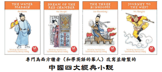 我特別提到了 2011 年透過英國的 Real Reads 出版的一套四部作品,這是把中國四大古典小說:《西遊記》、《三國演義》、《水滸傳》和《紅樓夢》,用英文改寫成適合西方少年讀者閱讀的小品作品。當然各界讀者專家不見得會認為這有什麼了不起,但這多少是一個介紹的工作,希望能透過生動有趣的文字,以及台灣繪者江長芳 (Shirley Chiang) 的妙筆生花,引起西方年輕讀者對中國文學、文化的興趣,之後再做進一步的了解。哪天有空應該來記錄一下當初改寫的過程,無論是和編輯、繪者的配合,或是書寫過程中的各種取捨和求全,都值得做個介紹。