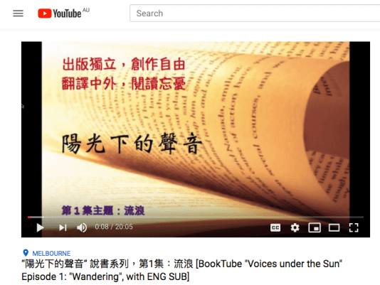 很高興能有機會在這裡和大家分享這個新推出的說書系列:「陽光下的聲音」。第一集的主題是「流浪」,附贈一小段主題曲。說書以中文進行,附英文字幕,讓中英讀者都能一探究竟。