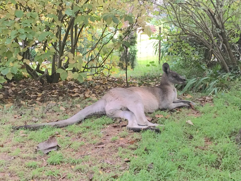 第二天早上,袋鼠不見了。後來家人說對街有位太太站在路邊觀望,還有人在指指點點,才知道那袋鼠半夜過了街,跳過鄰居的圍牆,現在躺在他們那裡吃草,可見「別家的草比較綠」(the grass is always greener on the other side) 這句話果然是真的。那位太太是野生動物專員 (Wildllife Officer),說袋鼠可能有神經方面的毛病,因此在等獸醫帶麻醉槍來,準備把袋鼠帶走。我們沒看到事情經過,想來應該滿順利。