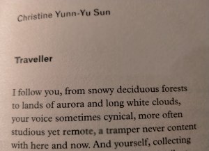 It makes me reflect on my own poem, where the traveller is indeed privileged, “a tramper never content with here and now” because “money affords flights, friends and freedom”. To them, “return becomes dreadful like dying as an end, unfulfilled, unfinished, unexplained”. They can walk everywhere and fill their pages with vivid worlds and fantastical visions, but they forever remain cynical.