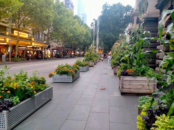 Back in February 2025, I went to the city to see the musical Dear Evan Hansen and was so bedazzled by the horticultural display here that I contacted the City of Melbourne about it. Back then it was more of a herbs and vegetables theme — soaring corn plants with fat cubs and flowy tassels, sunflowers in full bloom, nasturtiums, marigolds, many types of vegetables and herbs (e.g. kale, lemon balm, parsley and chives), and even strawberry plants.