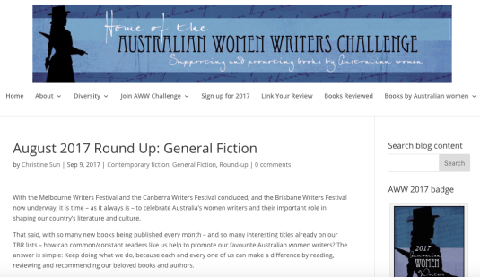 My round up for general fiction in August was published earlier today on the Australian Women Writers Challenge blog. I began by encouraging all reviewers to hang in there and help to make a difference: