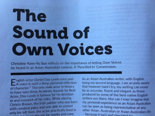 I am pleased to share with you, that my essay “The Sound of Own Voices” was recently published by Writers Victoria’s The Victorian Writer magazine (December 2018-January 2019). You can find the full article here, including all the references.